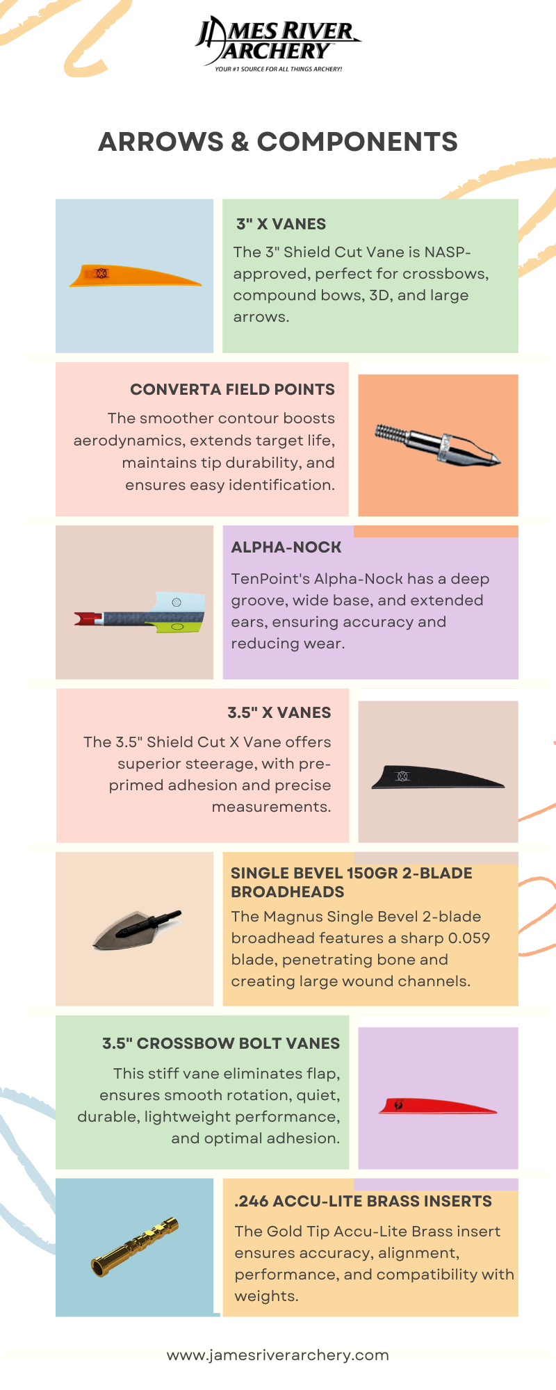 Improve your archery performance by choosing the very best arrows and components from James River Archery. Find high-quality arrows suited for accuracy, durability, and reliability. It's perfect for hunters and target shooters, so shop now!
