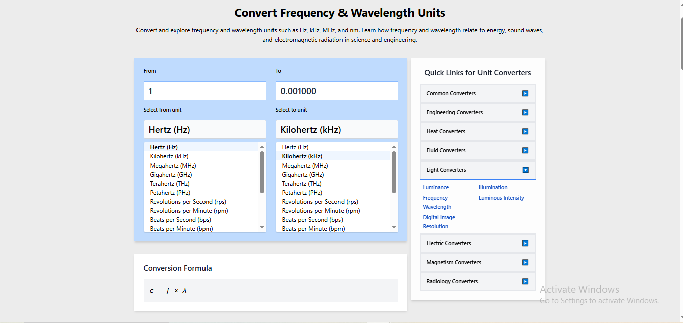 Online frequency and wavelength converters save time, reduce errors, and provide quick and reliable results anytime.