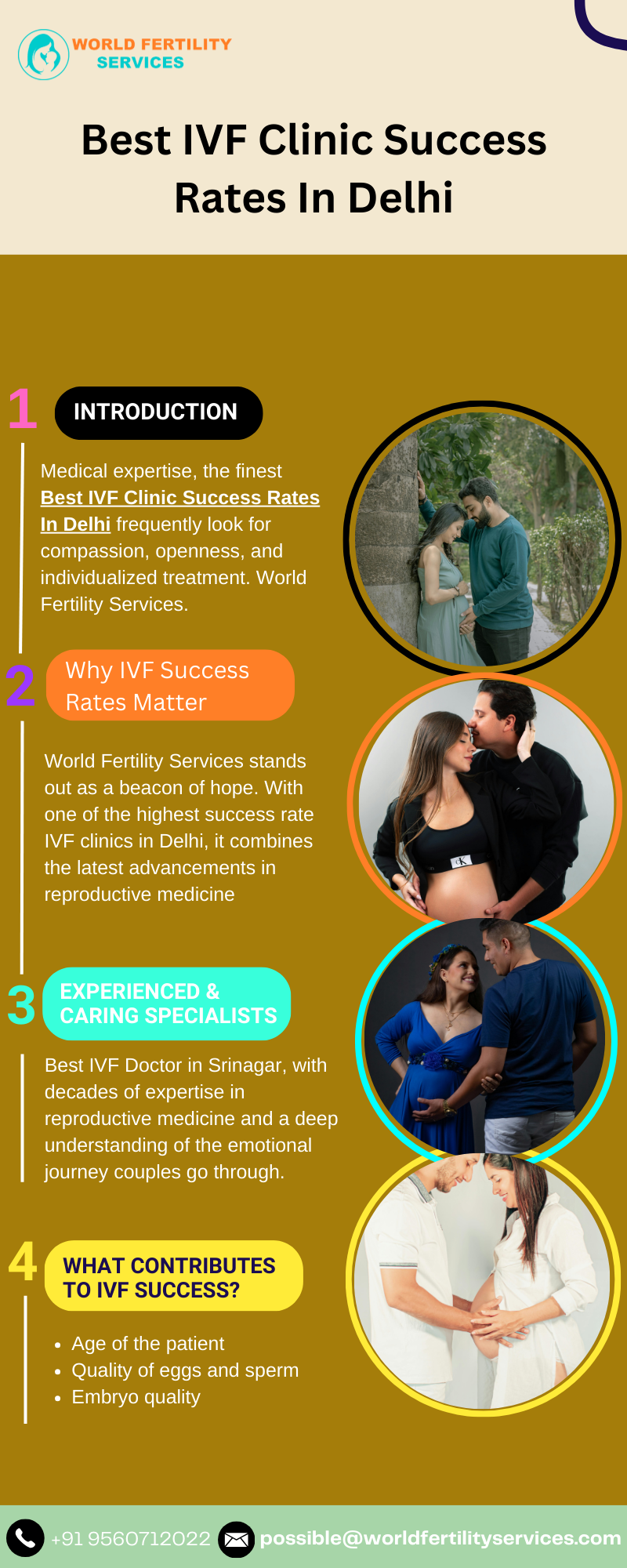 The Best IVF Clinic Success Rates In Delhi are provided by World reproductive Services, which uses advanced technology reproductive treatments and individualized care to fulfill parenthood ambitions. Our patient-centered approach, state-of-the-art equipment, and knowledgeable staff guarantee greater success rates. Acknowledged for our excellence and feelings, we are dedicated to helping you at every stage of your life-support journey. If you want reliable IVF outcomes in Delhi, pick World Fertility Services.
