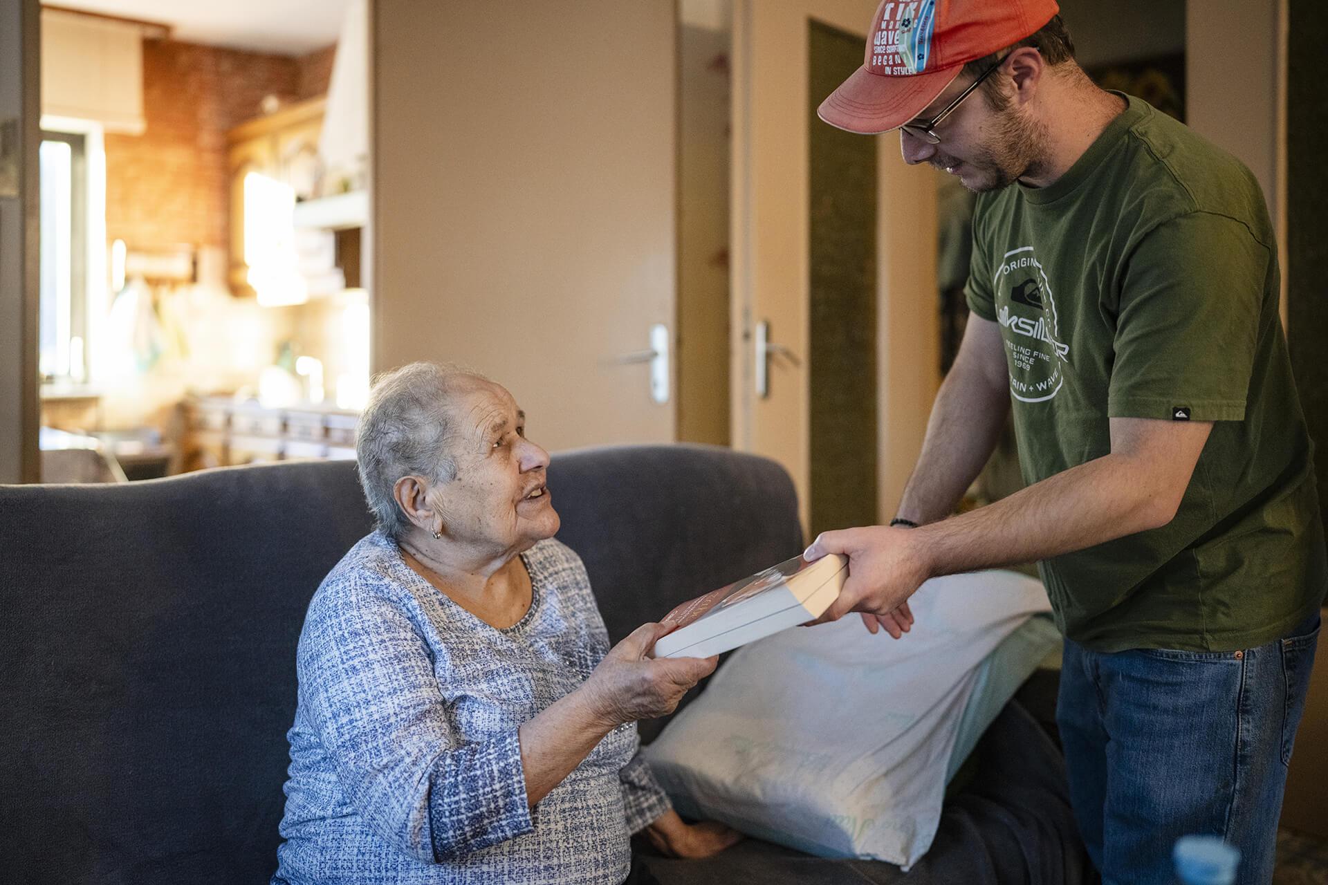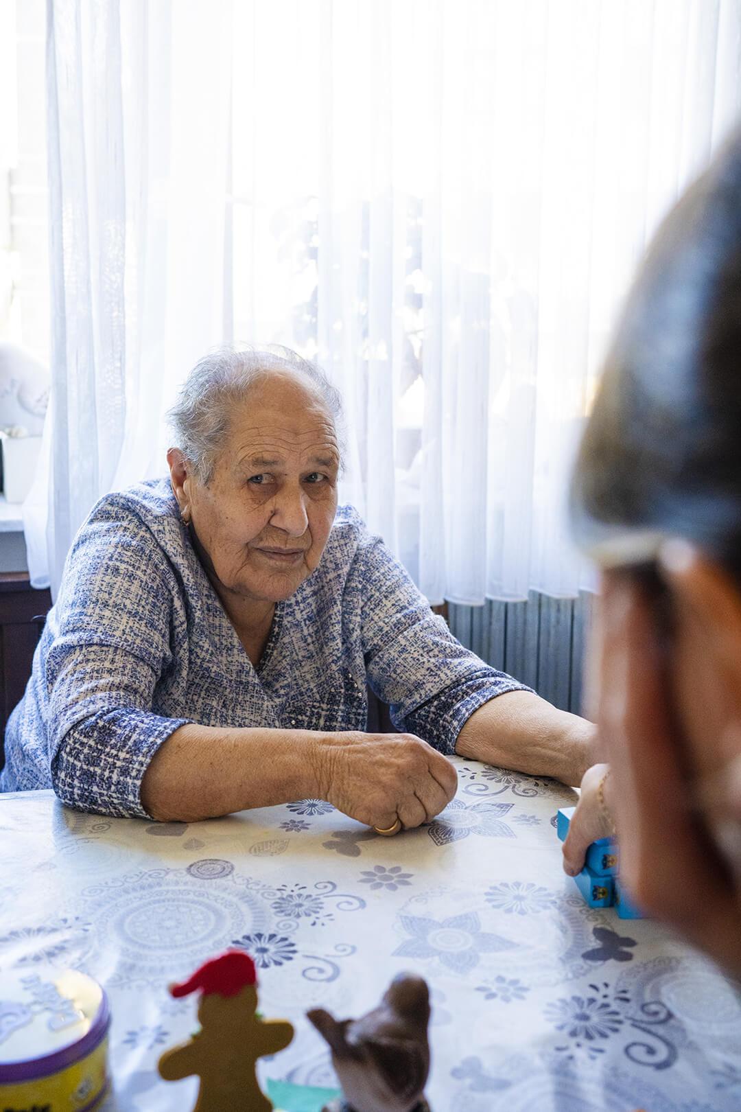 Virginia, 91 ans, avec son petit-fils Alexandre, chez elle à Stiring-Wendel (Moselle), le 5 novembre 2025. NICOLAS LEBLANC POUR « LE MONDE »