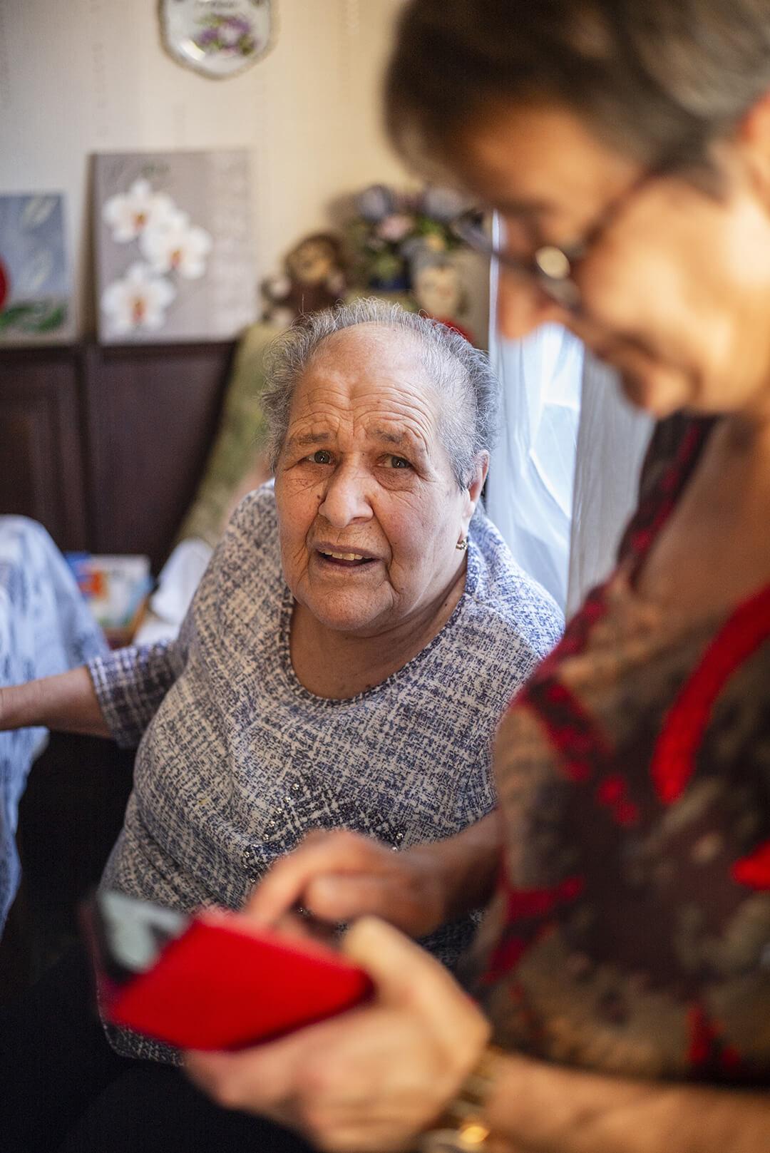 Angèle Midenet, jeune retraitée de 61 ans, habite à Stiring-Wendel, en Moselle, à quelques mètres de la maison de sa mère, Virginia, 91 ans, atteinte de troubles apparentés à la maladie d’Alzheimer. Au fil des années, elle a vu cette coquette Italienne originaire de Calabre au tempérament bien trempé délaisser la plupart de ses activités. Elle ne ramasse plus ses légumes dans le jardin, abandonne le tricot et rechigne à faire sa toilette. Elle oublie également les dates de naissance de ses proches, son âge, et ne reconnaît plus son propre visage sur les photos.