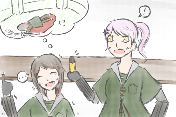 當然,這種悶痛的感覺到了比賽前都還未消退。雖然換好了裝備,但其實還在頭暈的少女整個人扶著掃帚、綠眸也黯淡了些,沒有平時的活力。