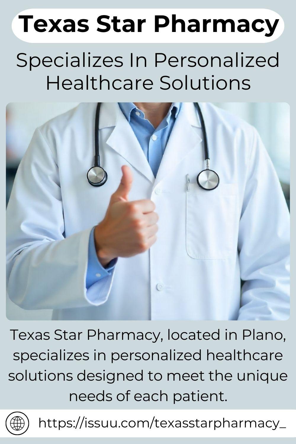 Texas Star Pharmacy, located in Plano, specializes in personalized healthcare solutions designed to meet the unique needs of each patient. With a commitment to innovation, they offer expertly compounded medications tailored to address individual health challenges. From wound care to therapeutic compression garments, their diverse range of services ensures comprehensive patient care. Working closely with physicians, the Texas Star team ensures that every patient receives optimal treatment. At Texas Star, their focus is on providing collaborative, patient-centered healthcare for families of all kinds.