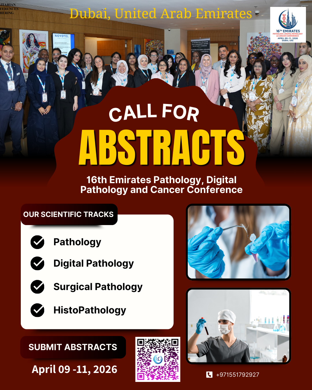 The Utilitarian Conferences Gathering (UCG) is delighted to announce the Call for Abstracts for the 16th Emirates Pathology, Digital Pathology & Cancer Conference, scheduled to take place April 09–11, 2026, in Dubai, UAE, along with the option to participate virtually. This prestigious CME/CPD accredited event invites researchers, pathologists, laboratory professionals, clinicians, oncologists, medical students, digital health innovators, academicians, and industry leaders from around the world to submit their abstracts and showcase their scientific contributions on an international platform.