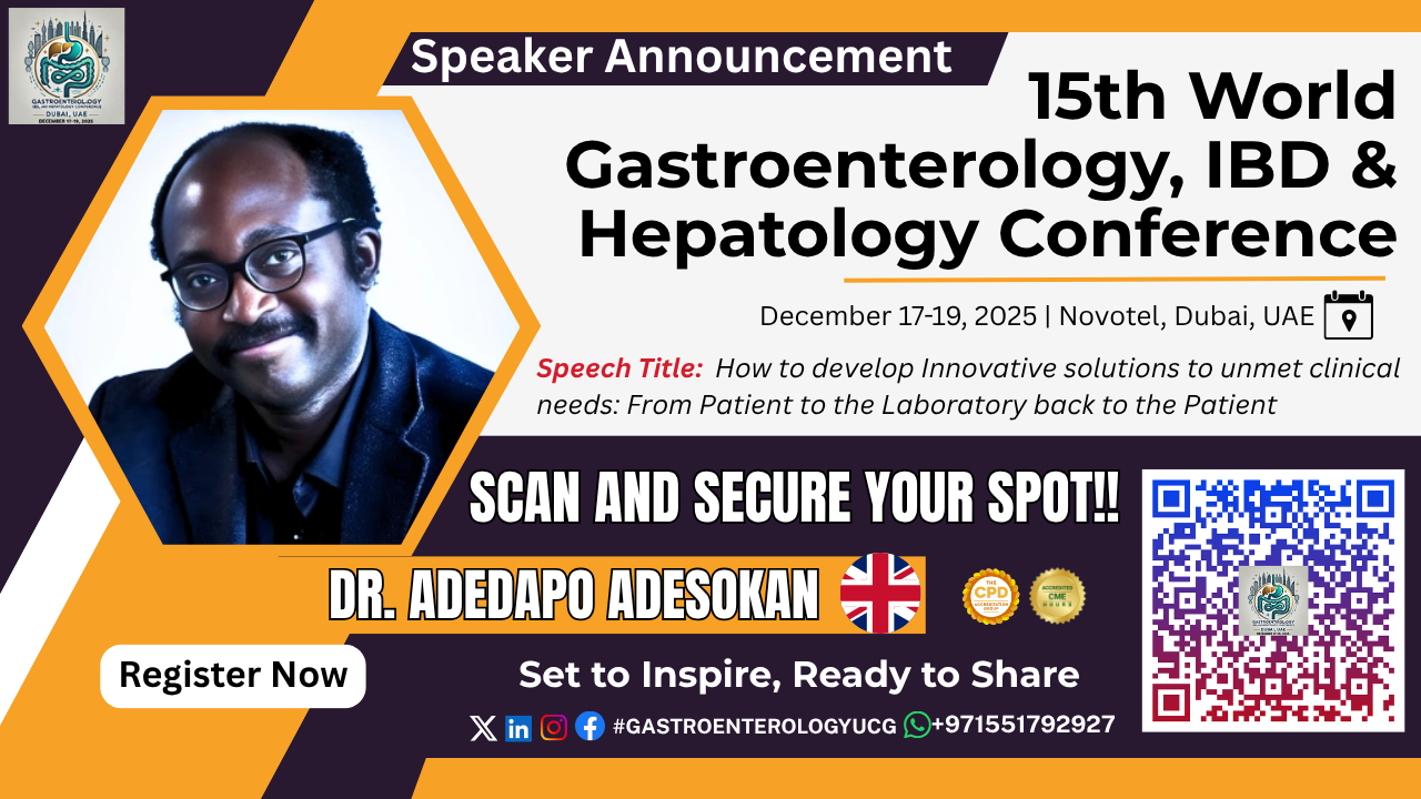 The 15th World Gastroenterology, IBD & Hepatology Conference is more than an event — it’s a global movement for better healthcare. With visionary speakers like Dr. Adedapo Adesokan, this conference is set to inspire innovation, elevate patient care, and shape the future of digestive and liver health worldwide. Secure your spot today and be part of groundbreaking discussions that will influence medical science for years to come.