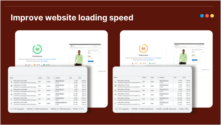 Magento 2 WebP Images allows you to optimize images and automatically convert them to WebP format, WebP images are the next-generation file format that allows you to significantly reduce the image size and maintain its quality at the same time.