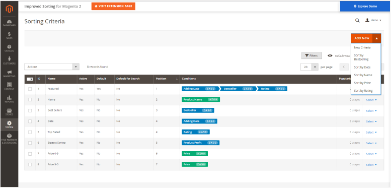 ranking options allow you to prioritize results that direct visitors of the shop to your best-selling and most popular products