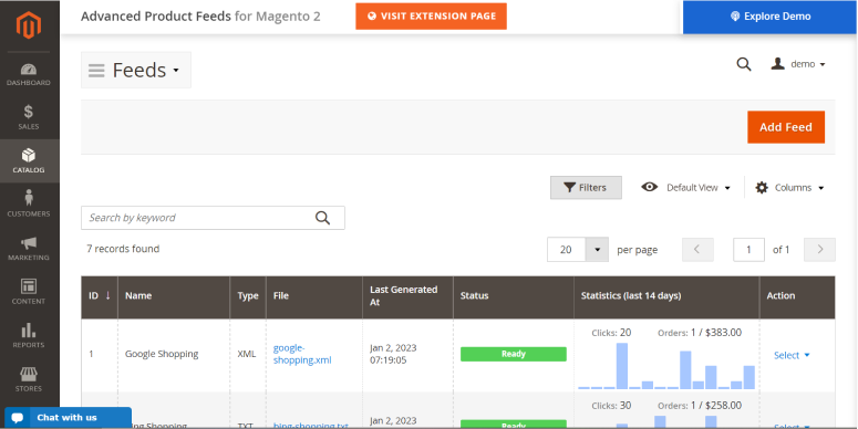 An extension for generating feeds on your website. With its help, you get great opportunities for business growth. You can automatically create feeds and deliver them to marketplaces. Advanced Product Feeds includes more than 50 templates for Amazon, Bing, eBay, Instagram, etc., and will help you create product feeds for Google Shopping.
