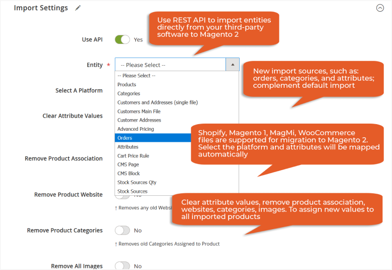 The Improved Import and Export extension combines native Magento 2 import and export tools with automation and necessary improvements. The extension is based on the Magento 2 import logic, which means that it understands all product attributes and adds new ones that simplify the product, customer, advanced pricing, and category imports.