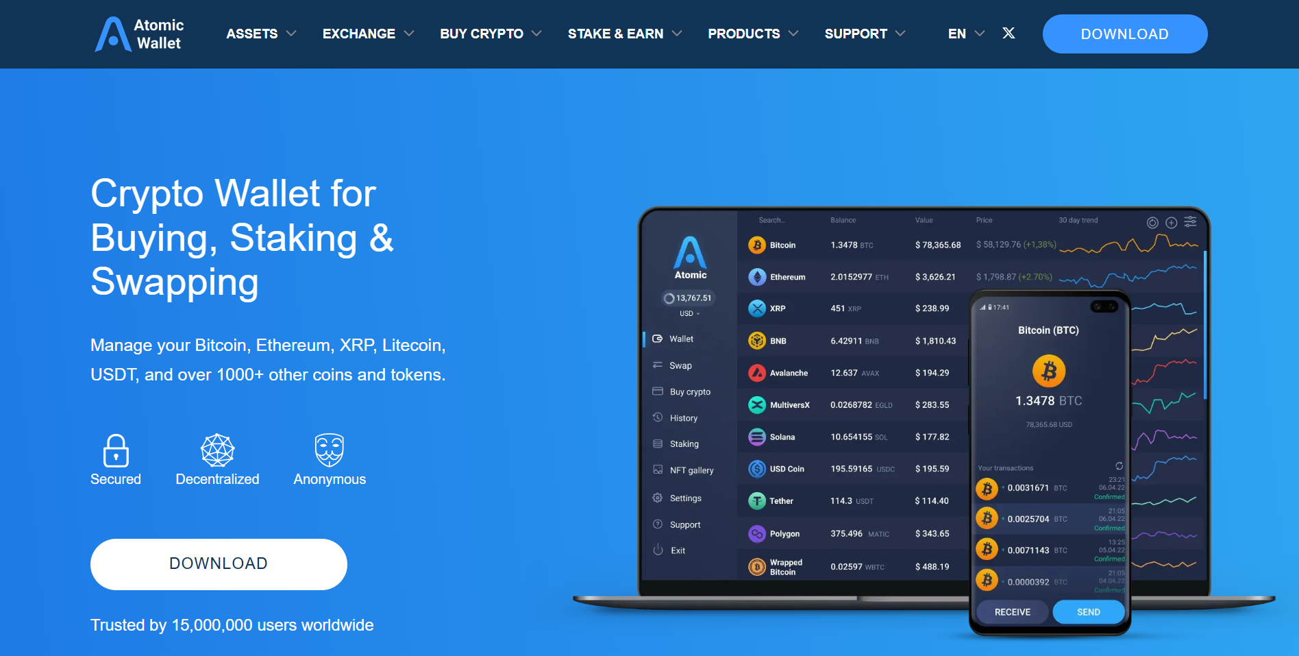 Atomic Wallet is available on Windows, macOS, Linux, Android, and iOS, allowing you to manage your assets from multiple devices.