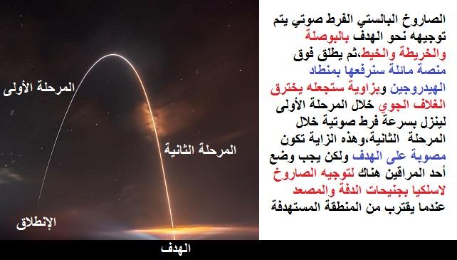 وإليكم صورة توضح حركة الصواريخ المنطلقة من منصة مائلة,فهي ذات مسار مقوّس ومكون من مرحلتين