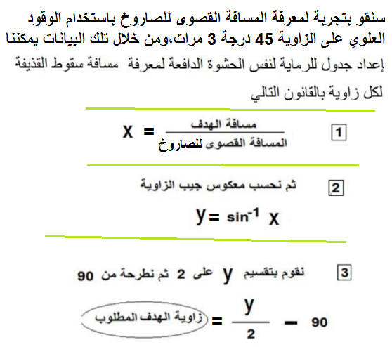 واليكم رابط موقع يشرح طريقة إنشاء جدول الرماية للصواريخ لضبط زاوية ارتفاعه ويشرح طرق تجاوز الحواجز وكيفية تصحيح أخطاء الرماية و اﻹتجاه