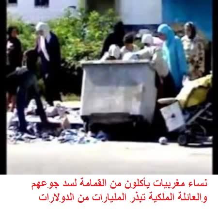 إليكم رابط لمشاهدة فيديو يظهر كيف يبحث الفقراء بالمغرب عن الأكل في صناديق النفايات والأزبال في الشوارع,والعائلة الملكية تسرق ثرواتهم وتبذّرها,فبأي حق يحكموننا