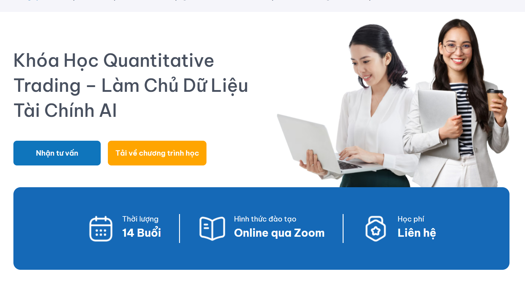 Khóa học còn trang bị khả năng ứng dụng Machine Learning để dự báo xu hướng, phát hiện tín hiệu giao dịch và quản trị rủi ro hiệu quả. Quan trọng hơn, học viên có thể tự phát triển và vận hành hệ thống Auto Trading của riêng mình, tích hợp các chiến lược định lượng để giao dịch tự động. Đây là cơ hội để tiếp cận phân tích định lượng chuyên sâu, áp dụng được cả trên thị trường Việt Nam và so sánh với chuẩn quốc tế.
