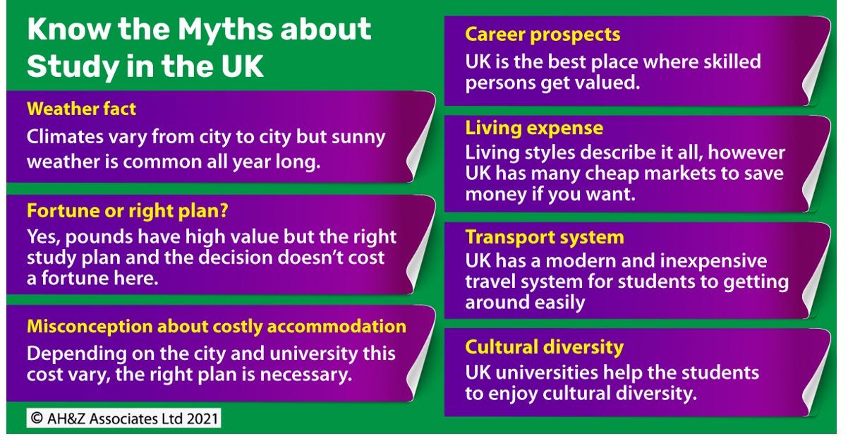 Going off of the last myth, many aspirants believe that living in the UK is out of their range. There are two facts to counter this myth. First, the UK university you’re applying to will likely have self-catered accommodation options that you can choose to cut down on costs or you can share a room.