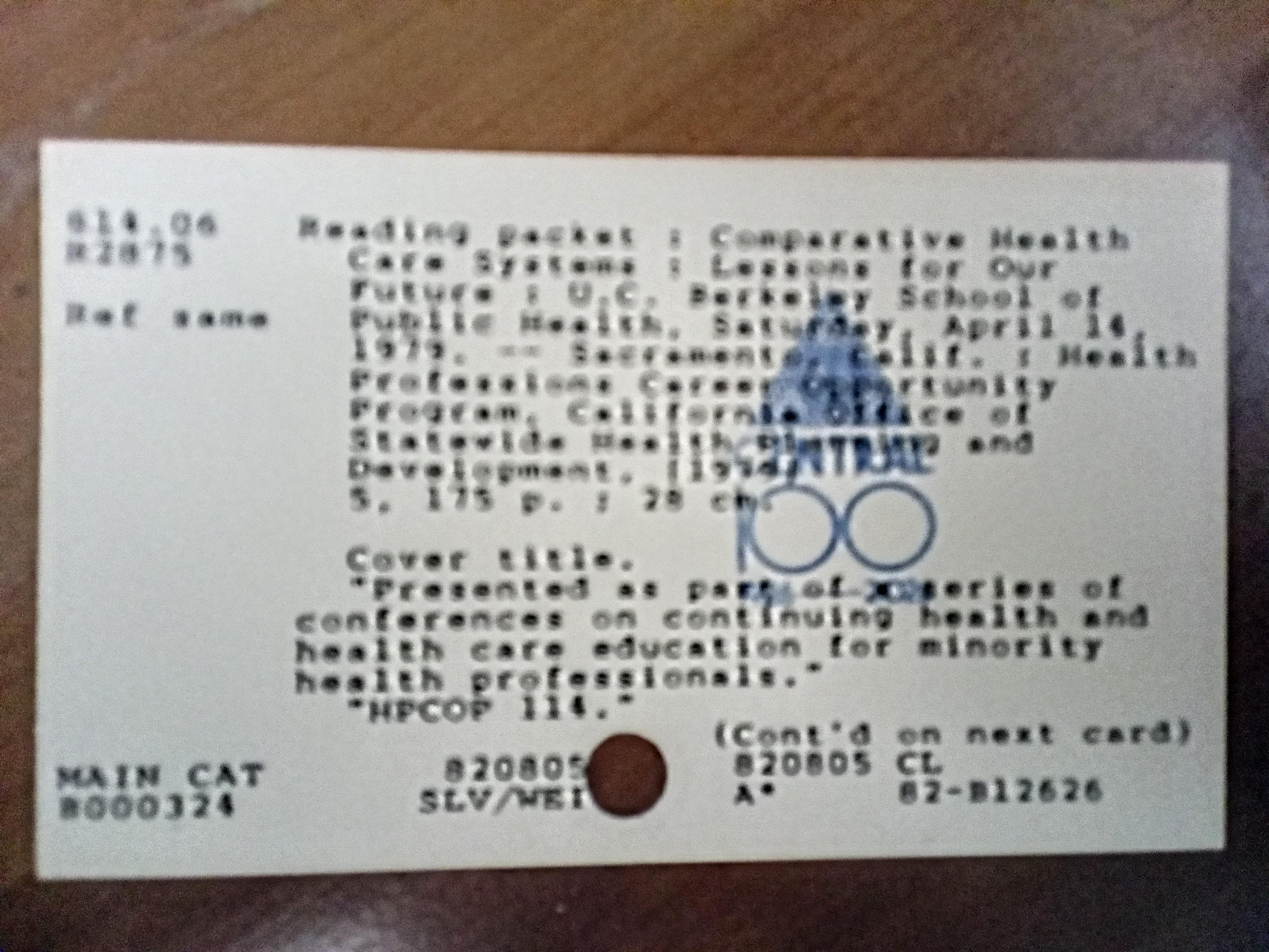 Card Catalog Card images,