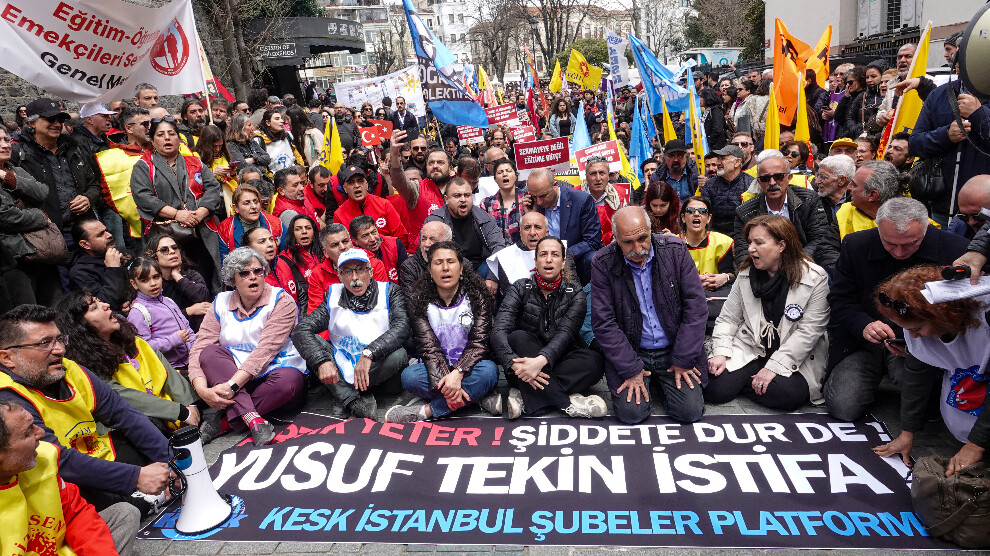 Urfa’daki Ahmet Koyuncu Meslek ve Teknik Anadolu Lisesi’nin eski bir öğrencisi olan Ömer Ket isimli bir gencin okulu basarak gerçekleştirdiği silahlı saldırının hemen ardından, bu kez Mereş’te Ayser Çalık Ortaokulu’nda henüz 14 yaşındaki 8. sınıf öğrencisi İ.A.M.’nin yine okuduğu okula silahlı saldırıda bulunması ülkede infial yarattı. Saldırıyı gerçekleştiren gençler için kriminal bir profil çizilerek, özel hayatlarının didik didik edildiği bir ortamda, ülkenin dört bir yanında sokağa çıkan eğitim emekçileri ve bağlı oldukları sendikalar, bu çocukların bu hale gelmesinde esas suçun sistemin kendisi olduğunun altını çizdi. Üç gün iş bırakıp, Milli Eğitim Bakanlığı başta olmak üzere illerdeki tüm Milli Eğitim Müdürlükleri önünde yaşam nöbeti başlatan eğitim emekçileri, peş peşe meydana gelen olaylar sonrası özür dilemekle yetinen Milli Eğitim Bakanı Yusuf Tekin’i derhal istifa etmeye çağırdı. Bu Milli Eğitim Müdürlükleri’nden biri olan İstanbul İl Milli Eğitim Müdürlüğü önünde iki gün nöbet tutan Kamu Emekçileri Sendikaları Konfederasyonu’na (KESK) bağlı Eğitim ve Bilim Emekçileri Sendikası (Eğitim-Sen) 2 No’lu Şube Başkanı Hanifi Bayındır ve sendikaya üye öğretmenler ANF’ye konuştu.