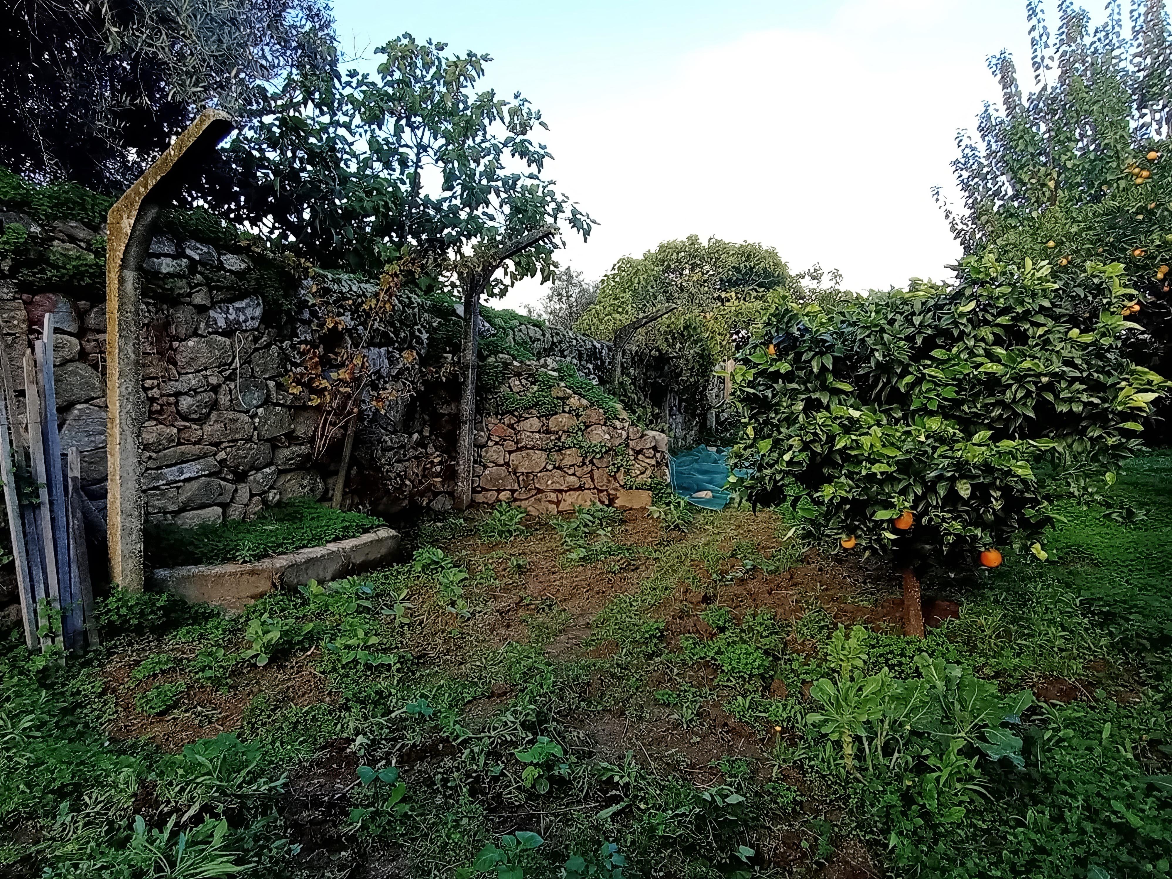 Central in the garden is an old construction previously used with animal power to pump up water into the adjacent granite basin. Nowadays an electric pump is used to this end. The power cable goes from the terrasse to a covered construction containing the pump.