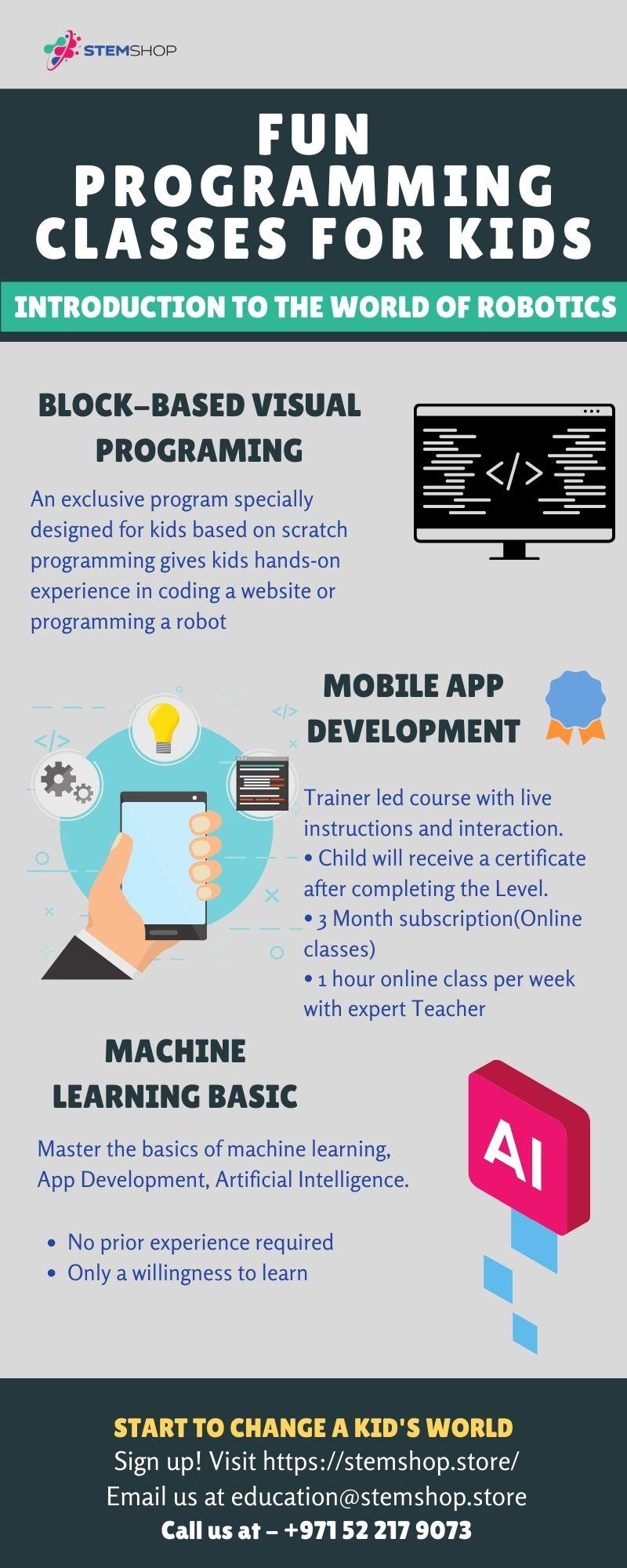 Coding is the language of the future, and every child should learn it, in our exclusive live online programming classes for kids. Stem shop store provides fun learning classes for kids of 7-14years of age. Follow the link to our website and enroll your kid now!