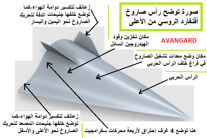 ويتم ذلك عبر تقليد صاروخ أفنغارد الروسي،وهو صاروخ باليستي مراوغ يعمل ب4 محركات سكرامجيت فرط صوتية لتوليد سرعة مهولة،حيث تتراوح سرعته بين 20 و27 ماخ،يحمل رأسا نوويا،ويصل مداه يصل نحو 18000 كيلومتر ليضرب أي مكان في العالم ،ويبلغ طوله 4,5 متر وقطره 3 أمتار بوزن كلي لرأسه المنفصل لا يتعدى 2 طن،ويتم إطلاقه بواسطة صاروخ مسرّع يعمل بالوقود الصلب المركّب،ويتم تركيب صاروخ معزّز عملاق خلف صاروخ أفنغارد لقذفه بسرعة عالية تجعل من المستحيل إسقاطه قبل تشغيل محركات سكرامجيت لو تم رصده من الفضاء خلال عملية الإطلاق،وإليكم صور توضح إمكانيات صاروخ أفنغارد الروسي