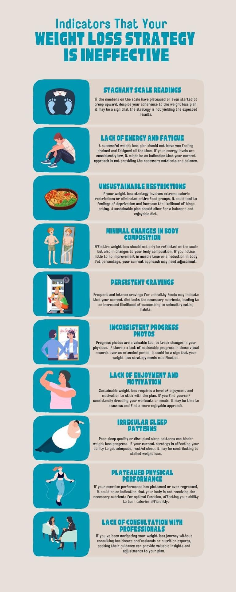 Don't despair! You've stumbled upon the right information. This infographic unlocks 7 clear-cut indicators that your current weight loss strategy might be missing the mark.