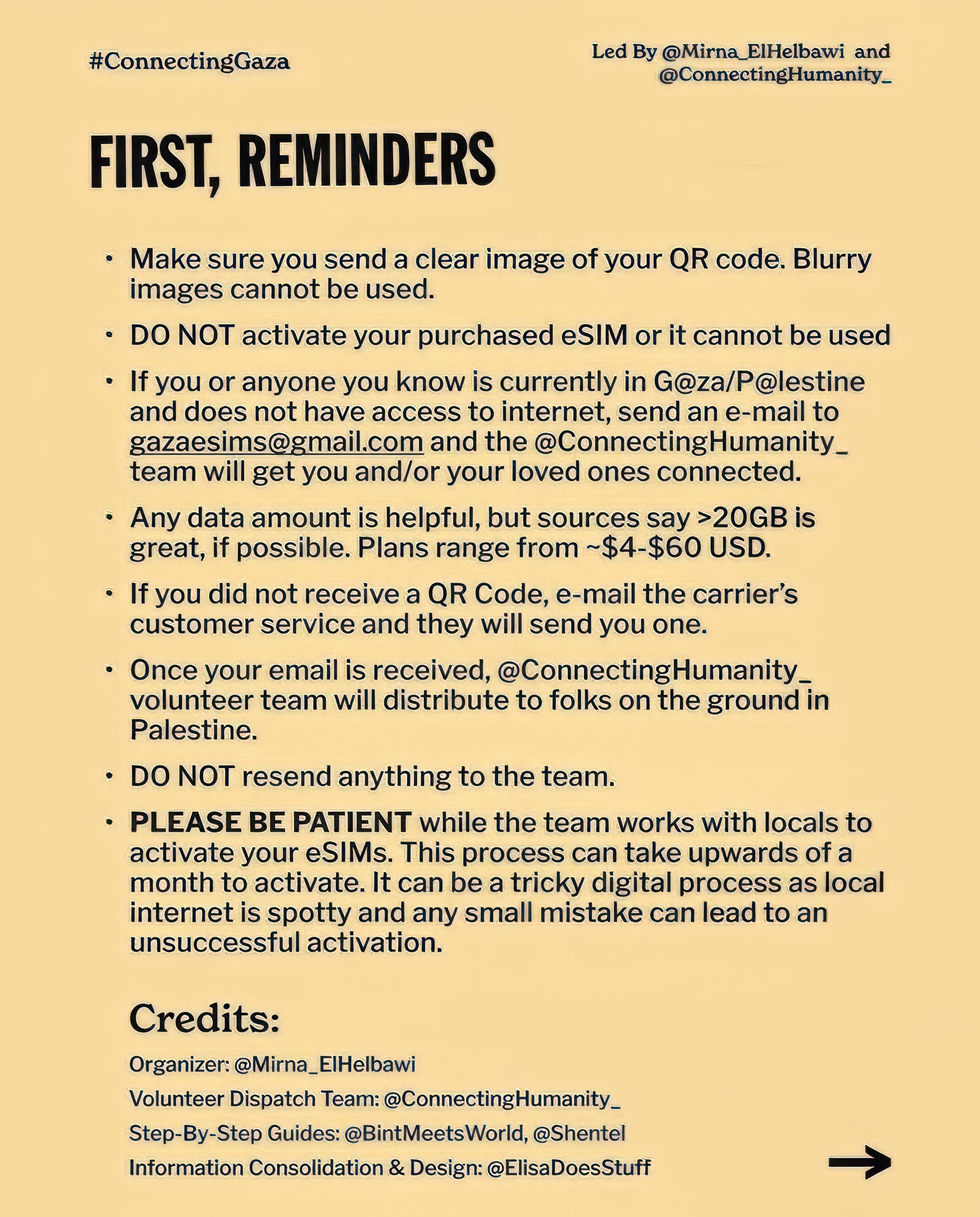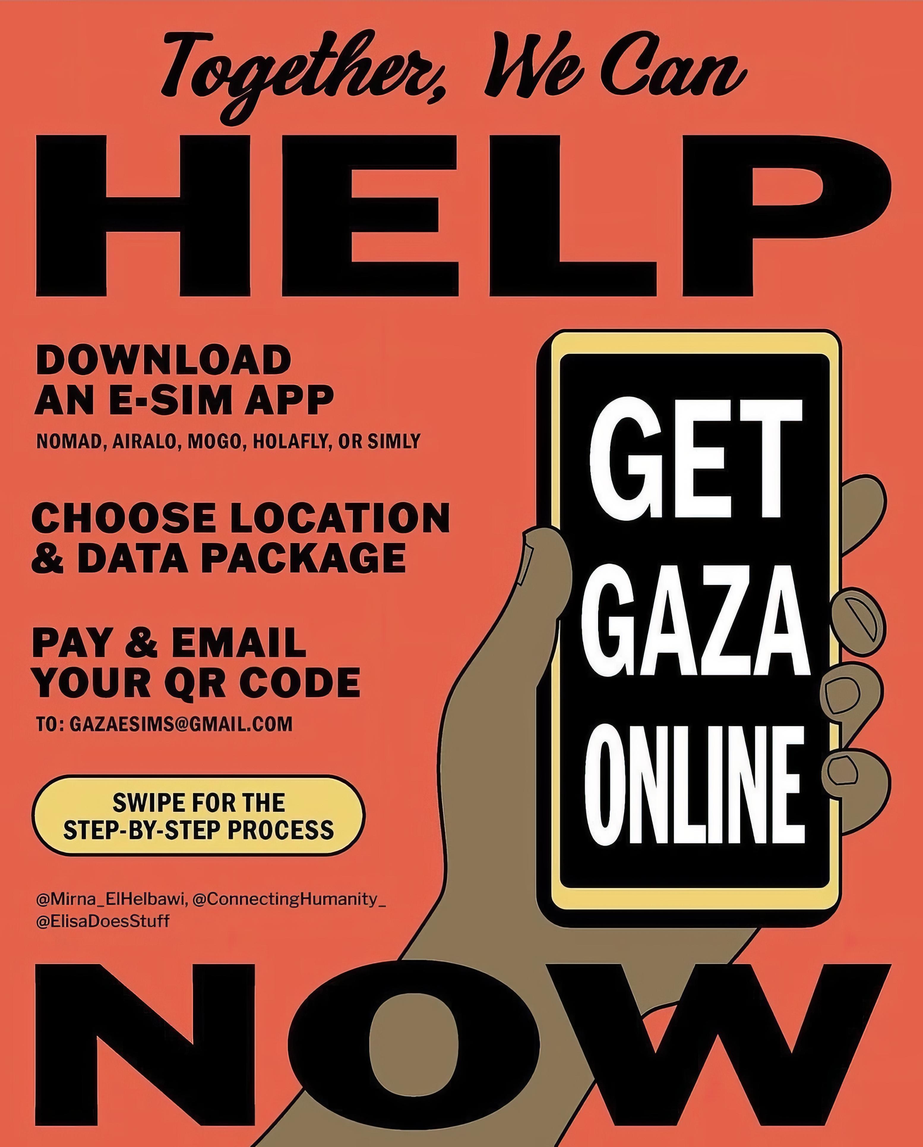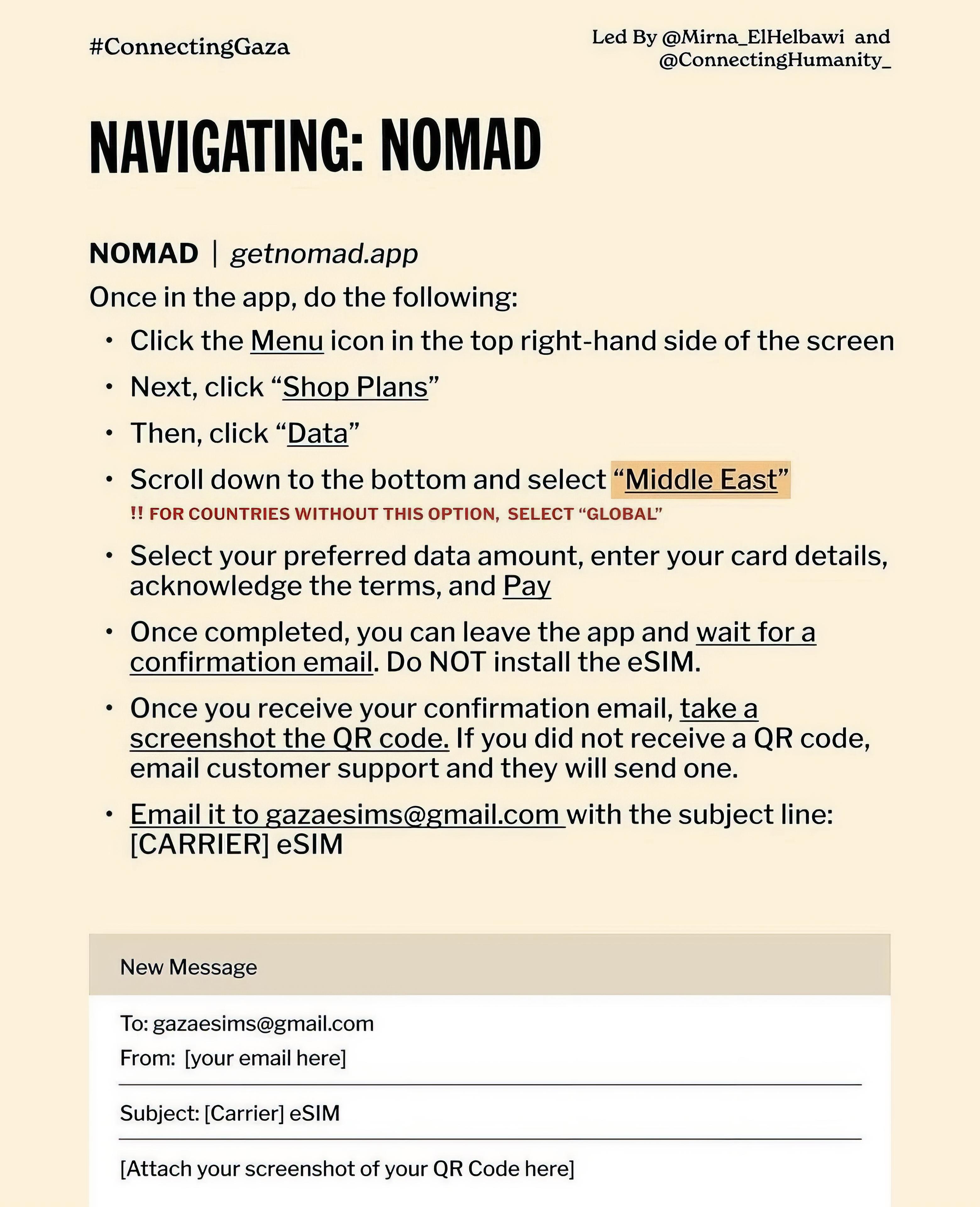 - Send your purchase QR code to: gazaesims@gmail.com with subject line: