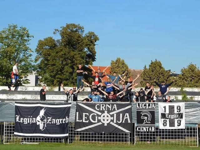 Na ovoj slici vidimo dio navijača Marsonije iz Slavonskog Broda koji se nazivaju Legija. Uz keltski križ, istodobno je vidljiv i istaknuti naziv Crna legija, što je povijesno ime ustaške vojne postrojbe iz Drugog svjetskog rata.