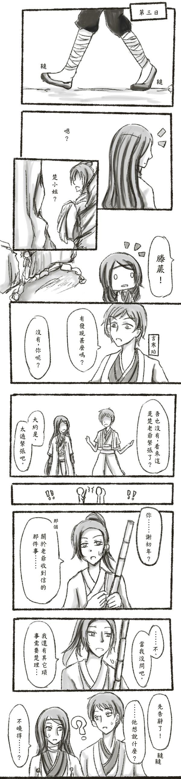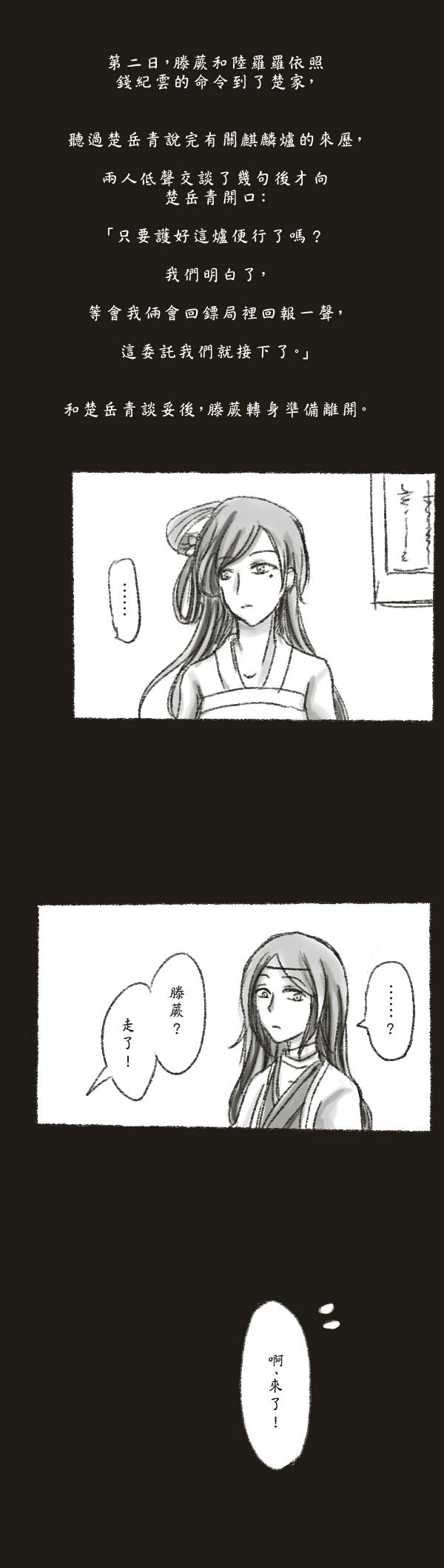 「滕蕨!金一笑出現了!」從遠處跑來的陸羅羅似乎沒有發現到眼前的亂象,只急忙拉了身為同僚的滕蕨,「走!他在倉庫附近!」