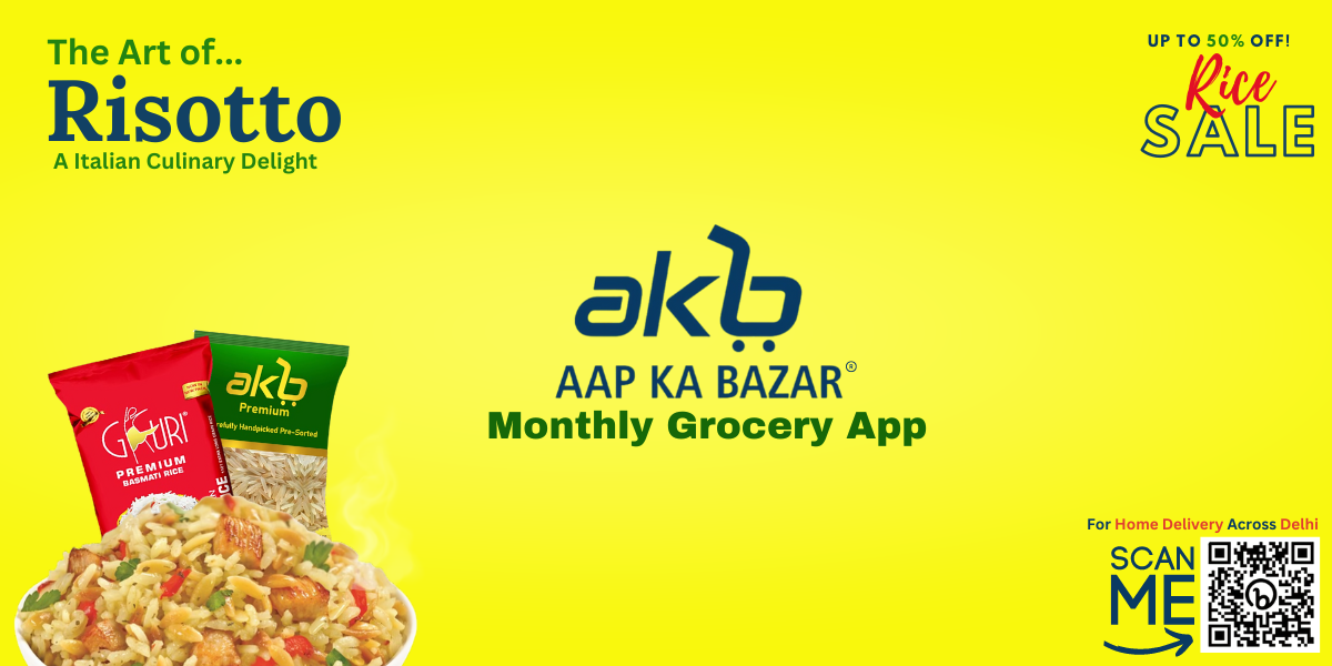 Aap Ka Bazar® is more than just a monthly grocery website, app and store(s) in Delhi and NCR; They are your culinary partner with decades of experience in providing top-quality ingredients for national and international cuisines. Their deep understanding of the nuances of cooking, including the delicate art of preparing risotto, allows them to offer you the best prices on the essential ingredients needed for this cherished dish, so let's know more...