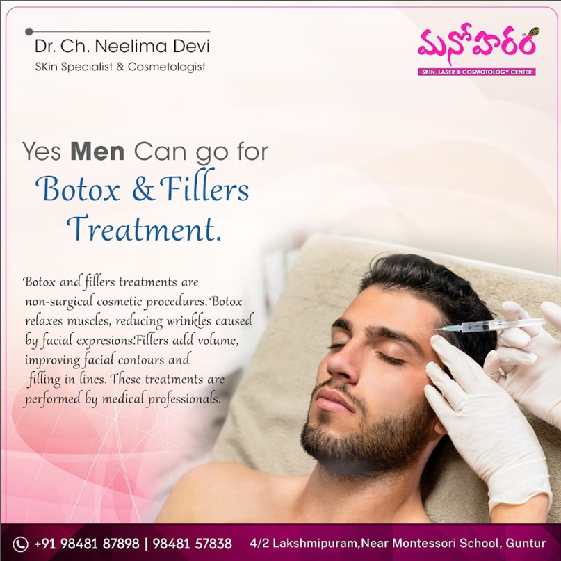 Men can undoubtedly benefit from Botox and fillers, and Manoharam Skin Clinic in Guntur is the ideal place to start your aesthetic journey. With the expertise of the top dermatologist in Guntur, you can achieve natural, youthful results that enhance your appearance and boost your confidence. Embrace the possibilities and discover how these treatments can transform your look and life.