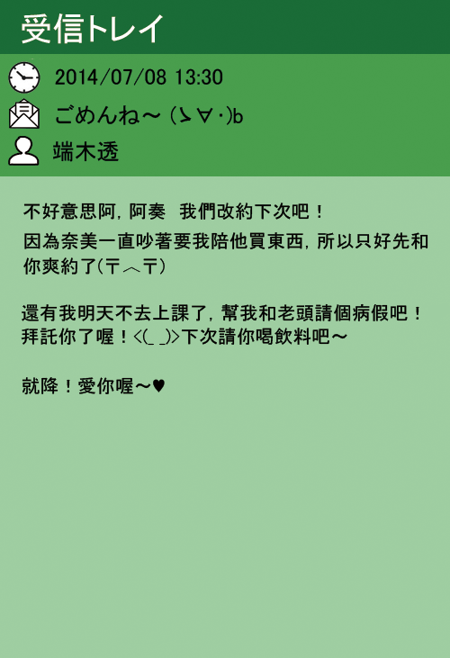 「唉,這次叫奈美嗎?他到底哪來這麼多女友啊..」雖說他早就習慣這種事情了,但多次被對方那樣爽約也是有點無法接受的
